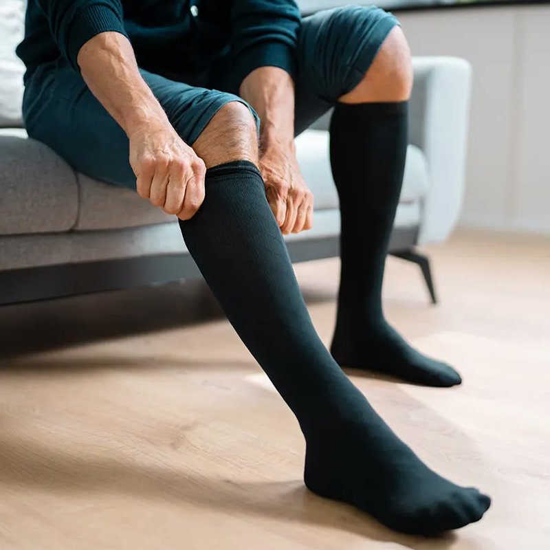 Compression hosiery is designed to improve blood circulation and reduce swelling in the legs caused by prolonged standing or sitting.
